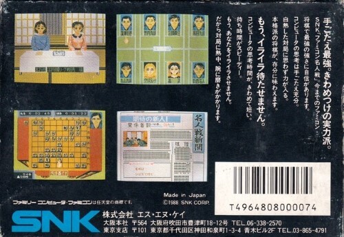 C’est également un des premiers jeux de shōgi édité par SNK, qui avant de devenir célèbre pour ses jeux d’arcade et de baston, a exploré des genres variés sur micro-ordinateurs et consoles 8-bit.