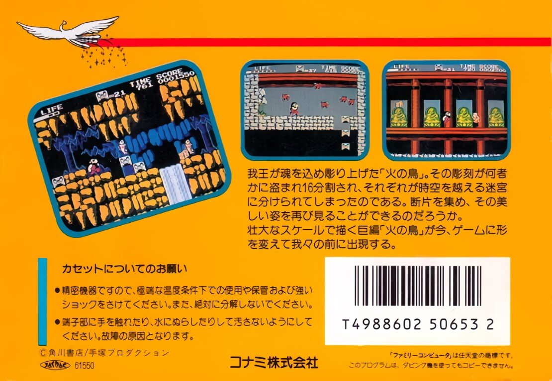 Anecdotes: Sorti en 1987, « Hino Tori » est basé sur le manga du même nom de Osamu Tezuka, célèbre mangaka japonais. Le jeu a été salué pour sa fidélité à l’œuvre originale et sa qualité de conception, en faisant l’un des titres les plus appréciés de la Famicom.