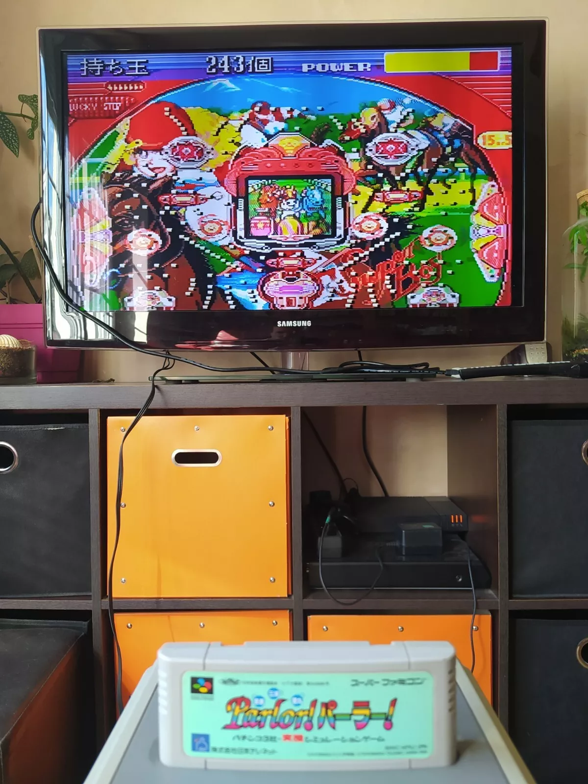 • Les graphismes sont détaillés pour une simulation de pachinko sur Super Famicom, avec des machines bien reproduites.
