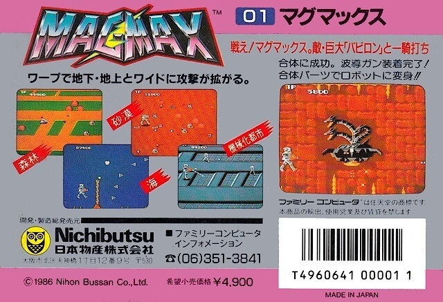 Conclusion : MagMax est un jeu classique de la Famicom qui a marqué son époque grâce à son concept innovant et son gameplay solide. Les fans de jeux de tir rétro et de robots trouveront certainement du plaisir à y jouer.