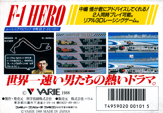 Introduction : « Nakajima Satoru F-1 Hero » est un jeu de course de Formule 1 qui a été publié en 1988 sur la Famicom, la version japonaise de la NES. Le jeu met en vedette Nakajima Satoru, un pilote japonais de Formule 1 qui a participé à de nombreuses courses de la discipline.