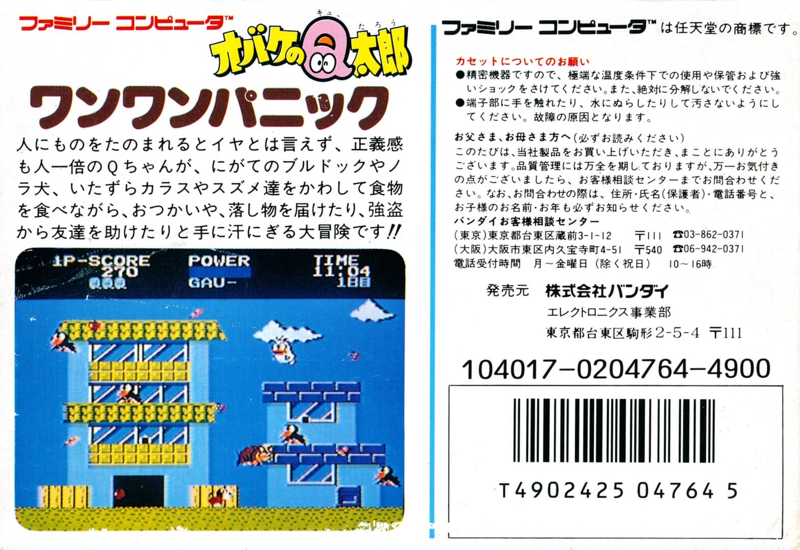 Introduction : « Obake no Q Tarou: Wanwan Panic » est un jeu d’action publié par Bandai en 1986 pour la Famicom. Le jeu est basé sur le manga « Obake no Q Tarou » de Fujiko F. Fujio.