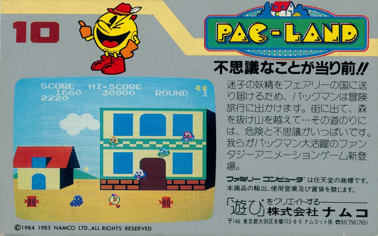 Pac-Land est un jeu d'arcade classique qui a été adapté sur la Famicom. Il met en scène Pac-Man, la célèbre boule jaune, dans une aventure de plateforme passionnante.