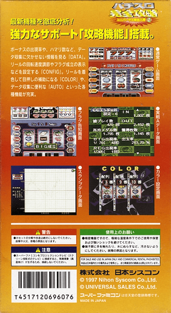 Nom du jeu : Pachi-Slot Kanzen Kouryaku – Universal Shindai Nyuuka Vol. 1 (Super Famicom – JP)