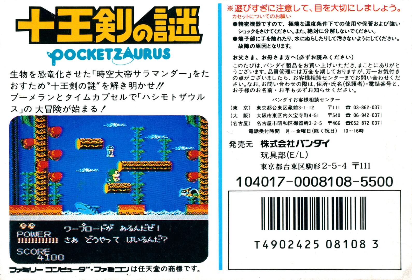 Anecdotes : « Pocket Zaurus: Juu Ouken no Nazo » est notable pour avoir été l’une des premières cartouches de 2 mégabits pour la Famicom, ce qui était une caractéristique rare à l’époque.