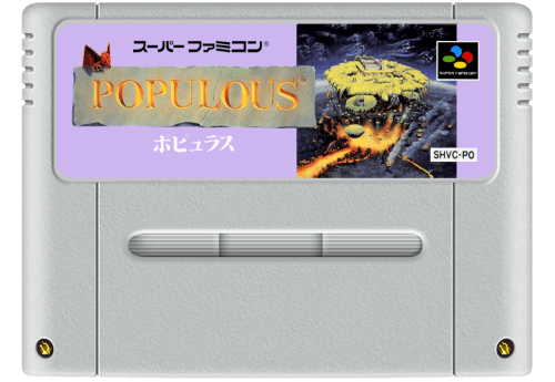 Titre Japonais : ポピュラス Développeur : Bullfrog Productions Éditeur : Imagineer (Japon) Code : SHVC-PO Date de sortie : 26 décembre 1990 (Japon) Genre : Stratégie / God Game Mode de jeu : Solo Plateforme : Super Famicom Rareté : Modérément rare en version japonaise complète