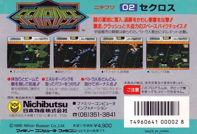 Introduction : Seicross est un jeu d’action de style arcade qui propose une expérience de jeu unique en combinant la conduite de motos tout-terrain avec des éléments de tir. Il a été initialement développé par Nichibutsu et est sorti en 1986 pour la Famicom.