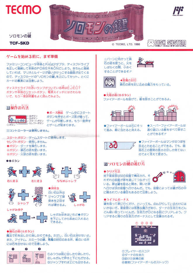« Solomon’s Key » est un jeu de réflexion qui combine des éléments de plates-formes. Il a été développé par Tecmo et est sorti en 1986 sur la Famicom. Le jeu met les joueurs dans la peau d’un sorcier nommé Dana, dont la mission est de résoudre des énigmes et de récupérer des clés magiques pour débloquer des portes. Le but ultime est de sauver le monde des forces du mal.