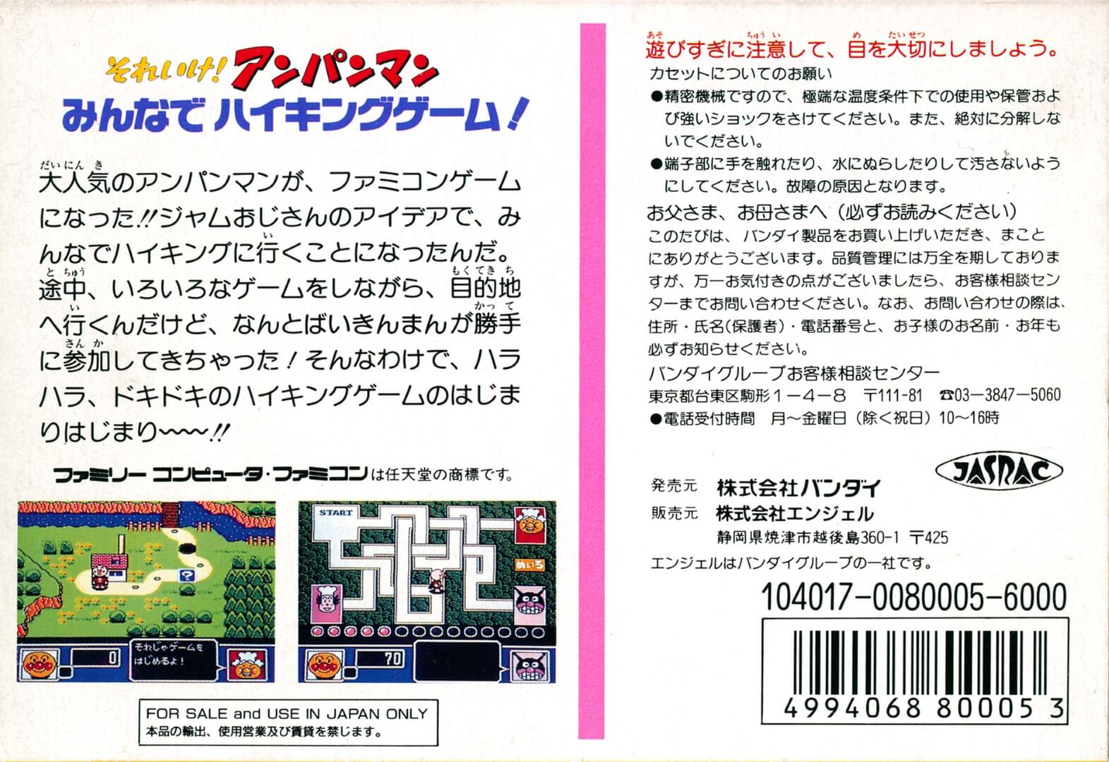 "Soreike! Anpanman: Minna de Hiking Game!" est un jeu vidéo basé sur le populaire personnage japonais Anpanman, sorti sur la Famicom en 1986.