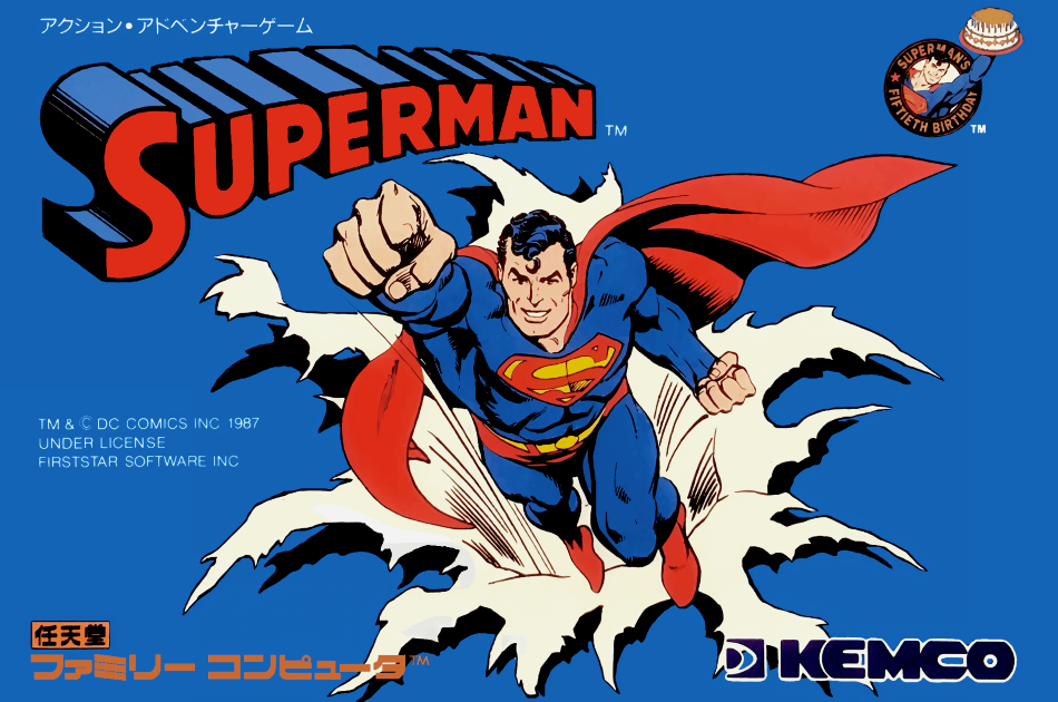 "Superman" est un jeu vidéo d'action développé par Kemco pour la Famicom. Incarnez le célèbre super-héros de DC Comics et affrontez les forces du mal pour sauver Metropolis dans ce jeu d'action palpitant.