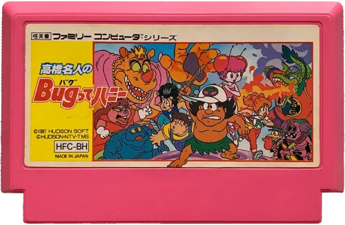 Mécanique de Jeu : Le jeu est un jeu d’arcade d’action rapide. Vous contrôlez Takahashi Meijin alors qu’il se fraye un chemin à travers des niveaux remplis d’insectes en utilisant des armes spéciales pour les éliminer.