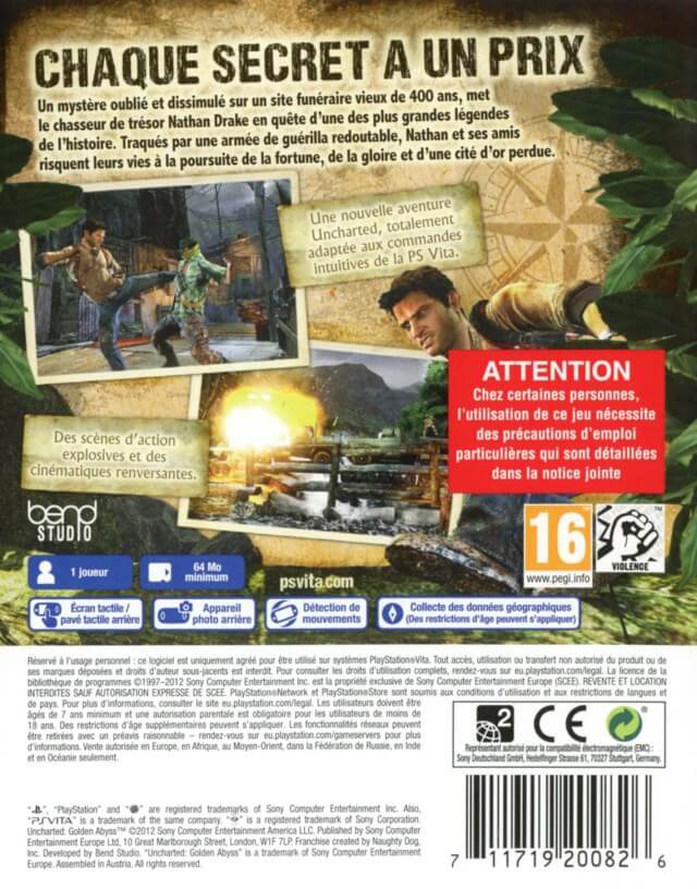 Nom du jeu : Uncharted: Golden Abyss (PS Vita – EU)
