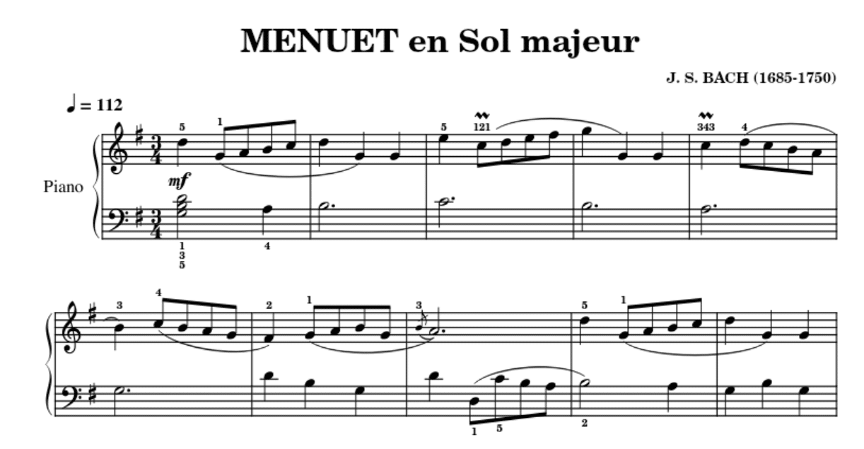 - Origine : « Menuet en sol majeur » de Johann Sebastian Bach (BWV Anh. 114)