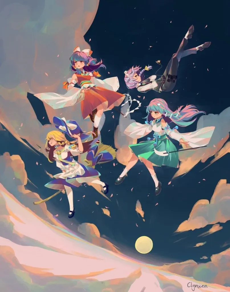 En contraste direct, Marisa Kirisame représente l’ascension humaine par la volonté. Magicienne « ordinaire », elle ne possède aucun don divin ou héréditaire. Sa puissance découle d’une recherche obsessionnelle et d’une collecte frénétique d’objets et de connaissances, un trait de personnalité qui la pousse souvent à « emprunter » des livres ou des artefacts à d’autres résidents de Gensokyo. Son style de combat, fondé sur la lumière et la chaleur, culmine dans son attaque emblématique, le « Master Spark », une décharge d’énergie massive qui illustre sa philosophie de la puissance brute acquise par le travail. La relation entre ces deux protagonistes est le moteur de la série : une amitié teintée de rivalité où la simplicité de Reimu se heurte à l’extravagance de Marisa.