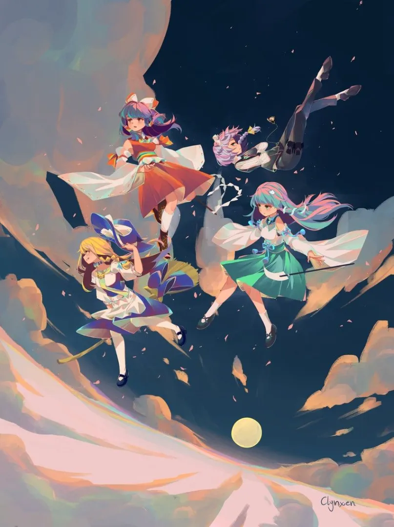 Le manoir Eientei abrite les réfugiés de la lune. Tewi Inaba, la lapine terrestre primordiale, représente la ruse et la chance ancienne de Gensokyo, bien antérieure à l’arrivée des Lunariens. Reisen Udongein Inaba, une lapine de la lune ayant fui la guerre, utilise des capacités de manipulation des ondes pour induire l’insanité et l’illusion chez ses adversaires. Le cerveau derrière ces résidents est Eirin Yagokoro, une génie scientifique et médicale lunarienne dont les connaissances dépassent l’entendement humain. Elle a créé l’élixir de Hourai, source d’une immortalité maudite qui lie Kaguya Houraisan et Fujiwara no Mokou dans un cycle de rivalité éternelle. Kaguya, princesse exilée, manipule l’éternité et l’instantanéité, tandis que Mokou, consumée par le feu du phénix, incarne la souffrance humaine face à l’immortalité.