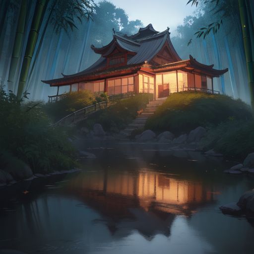 Eientei est souvent représenté comme un lieu calme et zen, avec des jardins luxuriants et des intérieurs raffinés inspirés des palais traditionnels japonais.